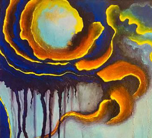 Acrylique sur toile coton au format: 80x40cm avec une finition des bord noir et d'un verni brillant. (10/2025)